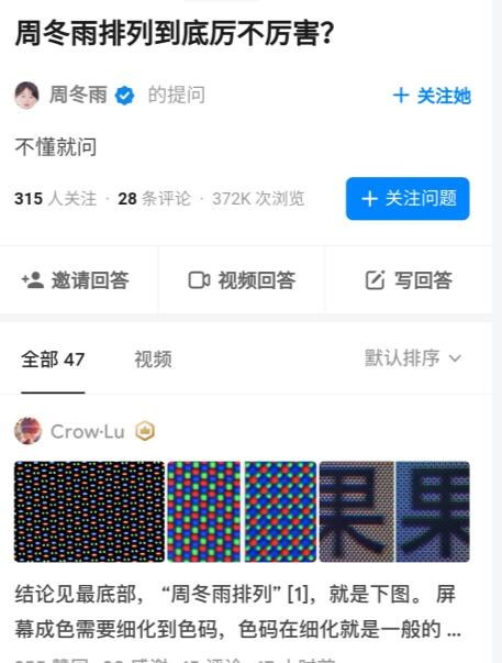 当然,不止京东方,像国产的维信诺、天马等厂商也曾推出过自己的 Delta 排列,只不过显示效果嘛,可能还不如打磨了好几年的周冬雨排列。