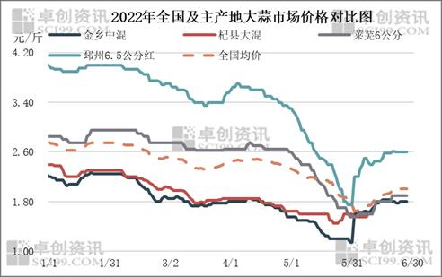 2022年上半年国内大蒜价格先跌后涨,因供需关系不同,新老货源行情走势相反,1-5月老蒜价格震荡下行,6月新蒜价格上涨。下半年新蒜存储人气高涨,或助推库外货行情上涨,因脱水加工需求量少于预期,预计库内蒜价格先跌后涨。