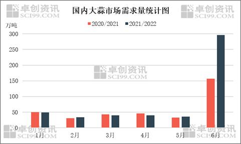 1-5月份大蒜市场总需求量为国内外市场刚需,6月份总需求包括刚需及入库需求。卓创资讯统计,上半年大蒜总需求量为494.31万吨,同比增加37.44%。其中3-4月刚需受不可抗力因素冲击同比下降,6月入库需求量达到 296.5万吨,同比增加159.16%。