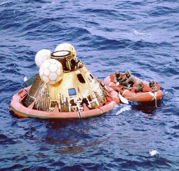 1969年7月24日,阿波罗11号返回地球,飞船降落在太平洋上,整个任务耗时8天3小时18分钟35秒。尽管从月球表面带回病原体的可能性微乎其微,3人还是接受了总计21天的隔离(他们在太空中的时间也被计算在内)。8月13日,3人参加了在纽约和芝加哥举行的盛大庆祝游行。