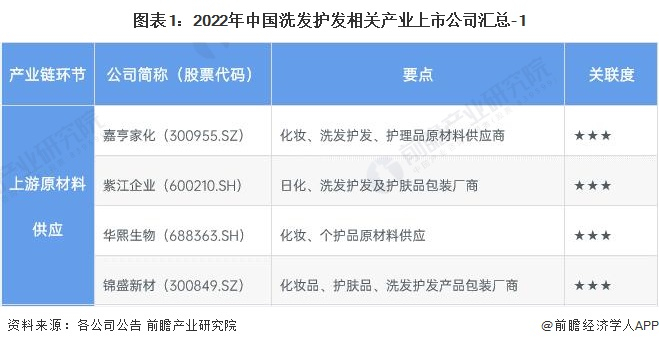 1、洗发护发产业上市公司汇总