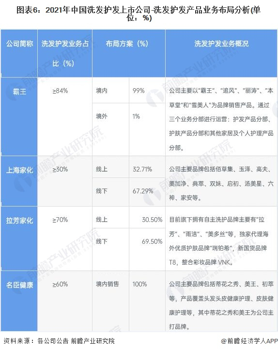 2、洗发护发行业上市公司业务布局对比