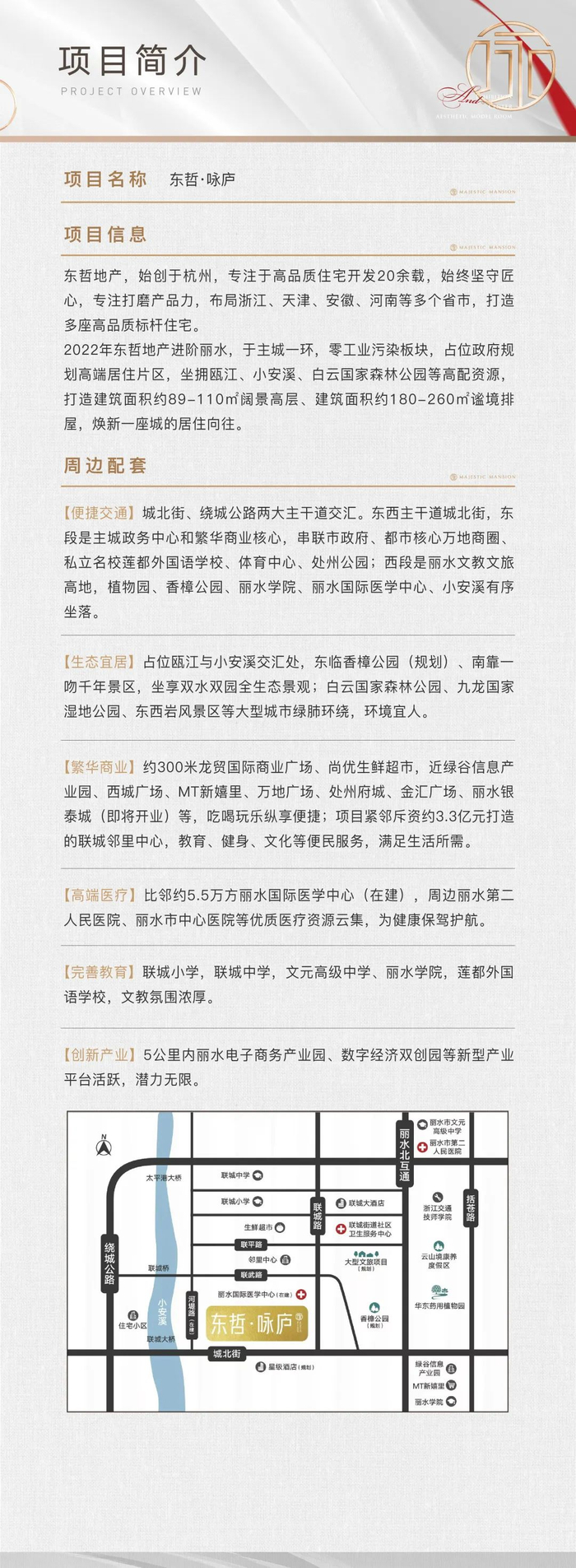 润庐珠玉在前,在杭州,若没有卓绝的地段和产品,不足以称之为“庐”。而今,深谙杭城“庐文化”的杭派精工房企东哲置业,结庐丽水主城一环,以划时代的产品禀赋,敬献一座以『庐』为名的墅区楼盘——东哲·咏庐,无可比拟的土地贵脉和产品形制,足以让丽水为之咏叹。