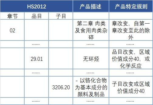 当货物与生产该货物的非原产材料被归入《商品名称与编码协调制度的国际公约》(HS编码)中的不同税号,可视为该货物经过生产制造已发生实质性改变,满足税则归类改变标准。税则归类改变包括章改变(2位级税号改变),品目改变(4位级税号改变)和子目改变(6位级税号改变)。