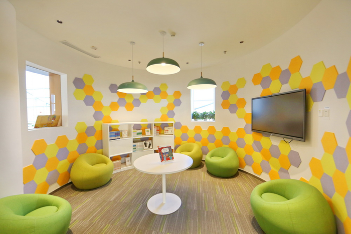 “求知摇篮”区域服务于幼儿及家长,提供幼儿图书借阅、亲子阅读及专业的阅读辅导。由于主要服务于2-6岁幼儿,这一区域设立了很多符合幼儿特性的阅读设施以及多功能的亲子阅读空间。矮矮的软包凳、台阶式的座位、3层的低矮书架都很符合小朋友的需求。开馆第一天,就有不少家长带着孩子在这里阅读、借阅绘本。