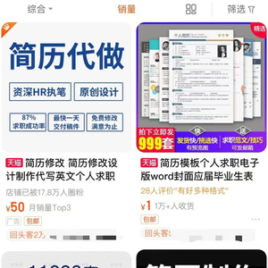 电商平台上“简历修改”搜索结果。