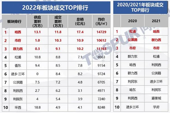 2022年上半年,哈尔滨商品房成交热度主要集中于哈西、市府、群力西等城市强功能板块,其次才是松浦、香东等城市外延的低价板块。