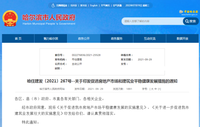 在7月18日出台的《关于促进哈尔滨市房地产业良性循环和健康发展的若干措施(征求意见稿)》中,从二孩、三孩家庭购房补贴、契税补贴、上调公积金贷款、人才购房补贴等多个方面提出若干举措。