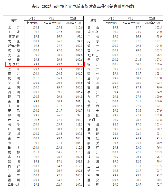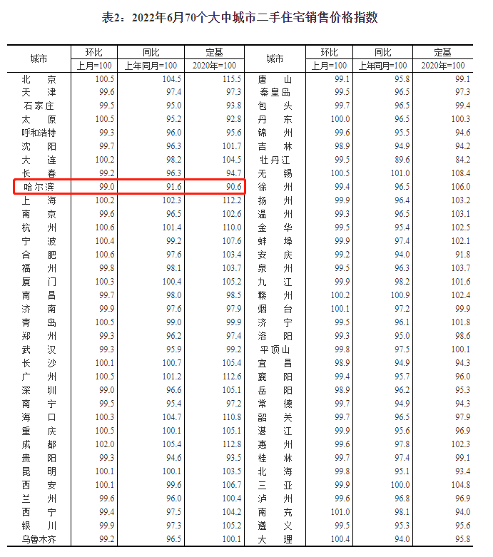 房价方面,国家统计局最新数据显示,6月份哈尔滨新建商品住宅销售价格环比下降0.6%,同比下降6.8%;二手房销售价格环比下跌1%,同比下跌8.4%。