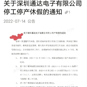 最近,一张关于深圳通达电子有限公司(以下简称“深圳通达”)停工停产休假的通知在网上流传。