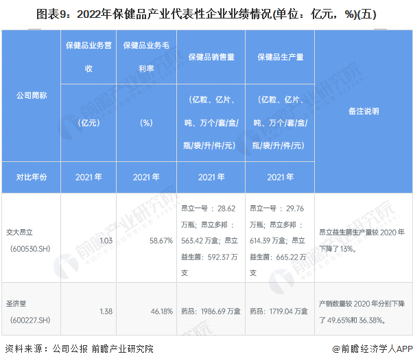 从保健品代表企业的业绩情况来看,保健品行业的整体毛利率处于较高的水平。各大保健品企业2021保健品相关的营收、毛利率、产销量如下表所示: