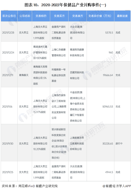 保健品产业代表性企业最新投资兼并动向