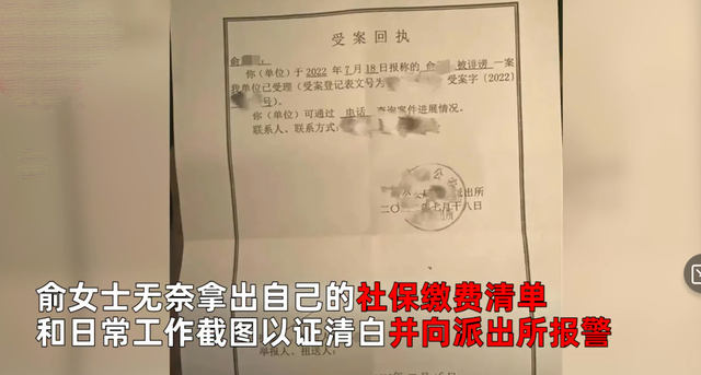 俞女士无奈拿出自己的社保缴费清单,和日常工作截图以证清白,目前该女子已向派出所报警。