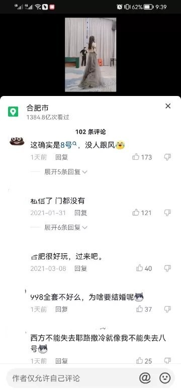 7月20日,据江西电视台报道,安徽合肥一女子在社交媒体发布自己订婚宴照片,被网友谣传为会所技师。女子表示均为不实信息,自己的生活已经严重受到影响,目前已搜集证据报警,警方已受案,正在调查处理中。