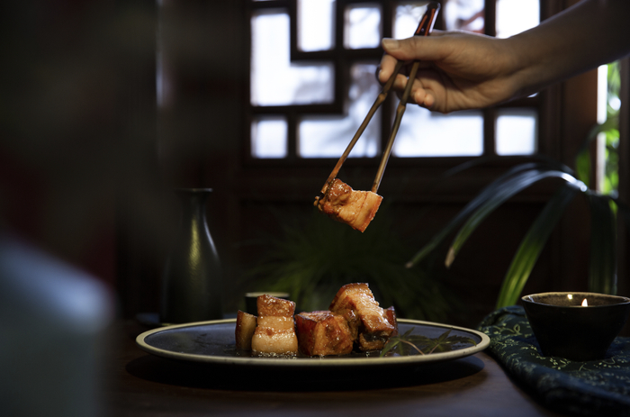 虽然肉要腌制,之后还要在冰箱里放置一天入味,但叉烧的原料梅花肉必须是鲜的。梅花肉是猪的上肩胛肉,因猪经常运动这个部位,瘦肉比例高,肉的横切面上,粉嫩的鲜肉与丝丝白色油脂相间,形似梅花,口感也最好,一头猪身上,一盒这样的肉,只能分出8份。而这块“金贵”的肉的鲜,不仅意味着它是保质期只有5天的冰鲜产品,而且也应来自于不同品牌的土猪,它们的价格也比平价的猪肉每斤会贵上15~20块钱。