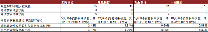 围绕分红的交易博弈逻辑在于权益登记日前买入,填权后卖出,获取分红收益。投资者目前参与公募REITs分红前后交易博弈的热情较高,但收益需要更长时间和频次的检验,就四大银行A股的历史经验来看,多次参与博分红收益的短线操作或可获取可观的平均正收益。