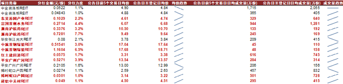 量价显示投资者博分红收益的热情较高。除流程尚未结束的华夏越秀高速REIT近期分红外,公募REITs共分红15次,其中有13次分红公告日至权益登记日的日均交易量高于公告日前5个交易日的日均成交量,有10次出现公告日至登记日期间量价齐升,表明投资者博分红收益的热情较高。另外,四大银行的A股历史上在分红公告日后,大多数也出现了日均成交量上升的情况。