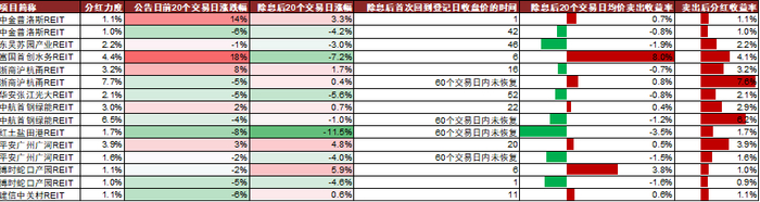注1:除息后20个交易日均价卖出收益率 = (除息后20个交易日均价 + 每份额分红金额) / 分红公告日至权益登记日均价 – 1
