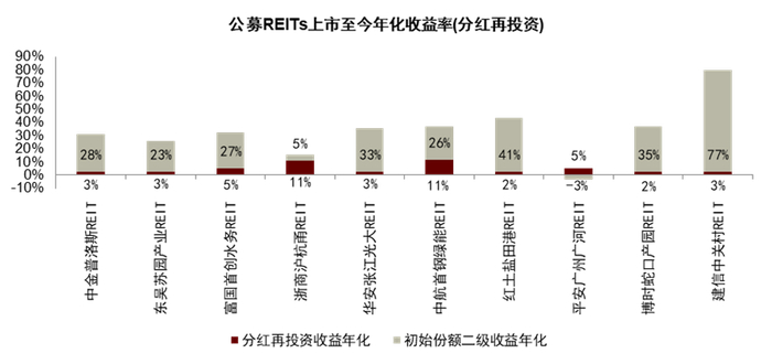 图表2:公募REITs上市至今年化收益率(假设分红用于再投资)