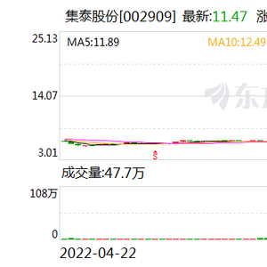 公司一季报显示,截至今年一季度末,胜帮凯米持有集泰股份3129.77万股,持股比例为8.4%。此次减持后,胜帮凯米所持上市公司股份比例降至5%以下。