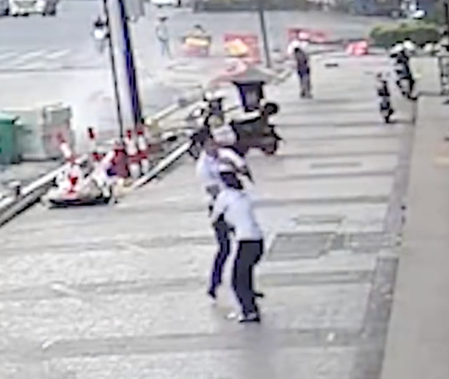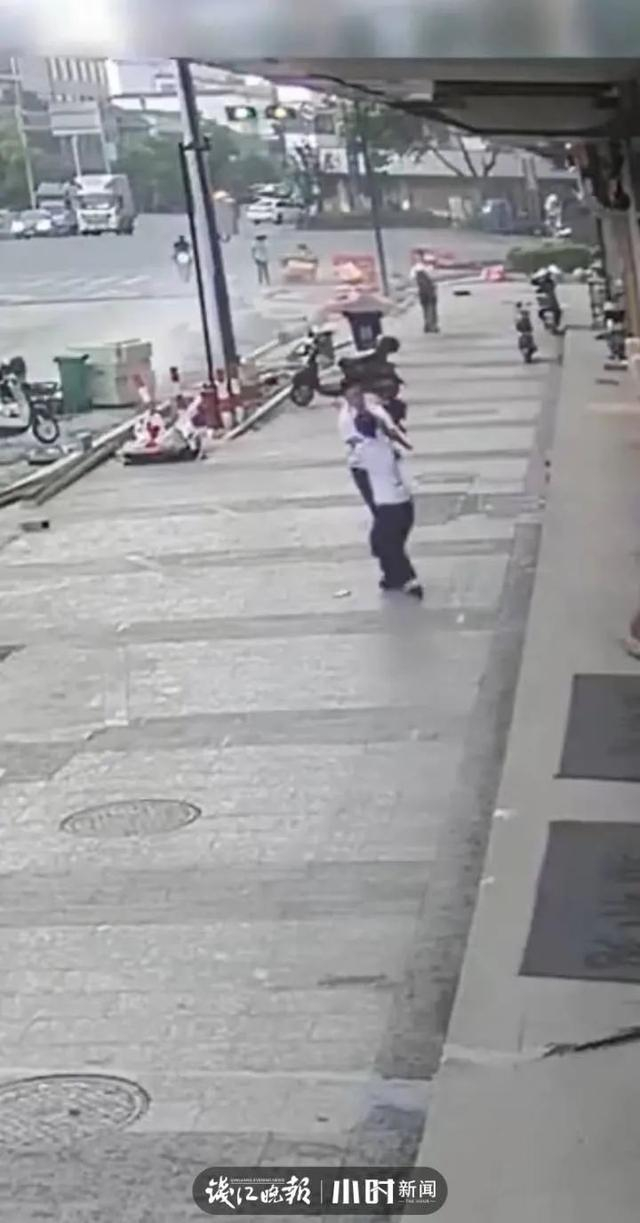 抱起孩子后,沈东才发现孩子嘴角有血,腿上还有一道比较深的伤口在流血。不过孩子会转过头看他,还发出了哇哇的哭声,嘴里一直叫着“妈妈”。“总体看起来还好,看小女孩没什么大事,我也是松了一口气。”沈东说。