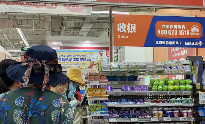 今天上午,记者来到位于大兴区南海家园五里的物美超市。在超市收银台,记者看到,超市为使用“北京通-养老助残卡”的顾客开辟了专门的结账通道。