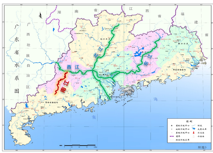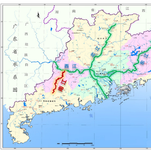 南江,也叫罗定江,位于西江以南,珠江西部,历史上与西江、北江、东江并称为“广东四江”。其发源于茂名信宜鸡笼山,自南向北而上,依次流经信宜、罗定并最终在郁南南江口镇注入西江。南江全长201km,流域面积4493km2,是广东十大河流之一,也是云浮境内最长的河流。