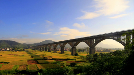 在这里,有被誉为“世界规模最大的人工渡槽”的长岗坡渡槽。长岗坡渡槽是首批广东省红色革命遗址重点建设示范点之一,位于广东罗定市罗平镇境内,有“广东红旗渠”“北看红旗渠,南看长岗坡”之称。长岗坡渡槽是罗定市最大的水利工程——金银河水利枢纽工程的主体设施,工程始建于1976年11月,渡槽全长5200米,宽6米,最高37米,有132个拱跨,最大拱跨51米,设计流量为每秒25立方米,无论是规模还是长度,当时都雄居世界第一,创造了我国水利建设史上继河南林县红旗渠之后的又一个奇迹。