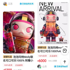 以新版SPACE MOLLY 可口可乐为例,去年款最高曾炒至万元以上。而今年新款在闲鱼上的报价普遍在6000元左右(1000%),而400%的产品报价多在1500元以下。