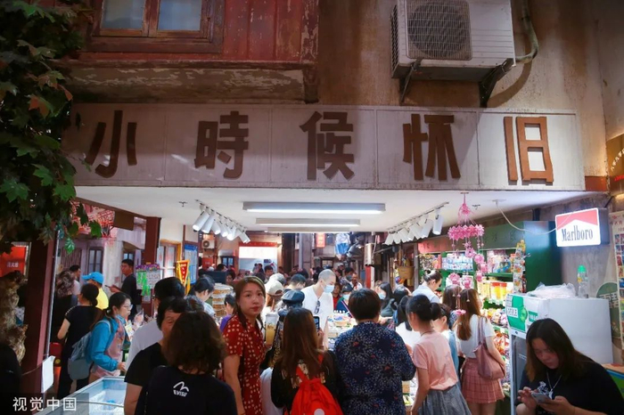 2021年7月,上海北外滩来福士商场,提篮桥历史街区“怀旧集市”人气火爆,不少80后、90后来这里找寻童年记忆。图片作者:陈玉宇,来源:视觉中国