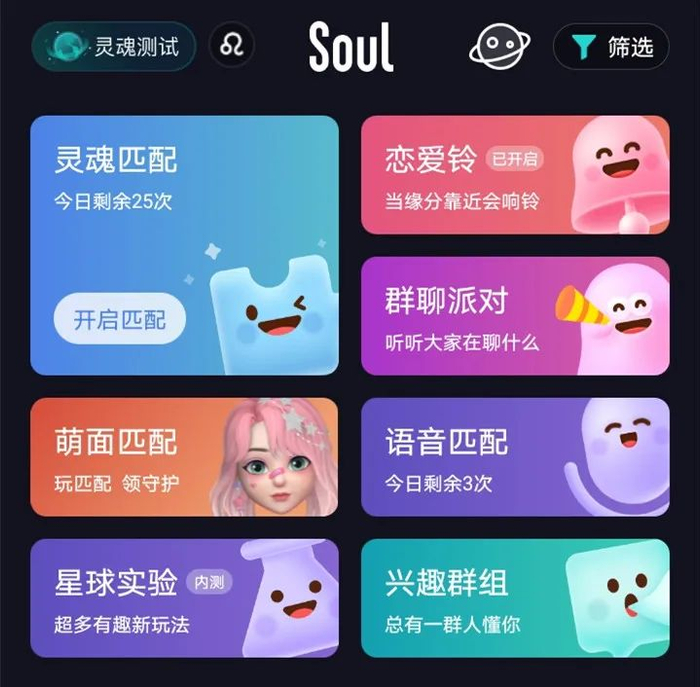 网络婚恋的部分功能,被陌生人社交取代了,陌陌之后,又有新玩家Soul。两者最大的区别在于,随着移动互联网时代去中心化的持续推进,平台在其中扮演的角色,逐渐淡化。