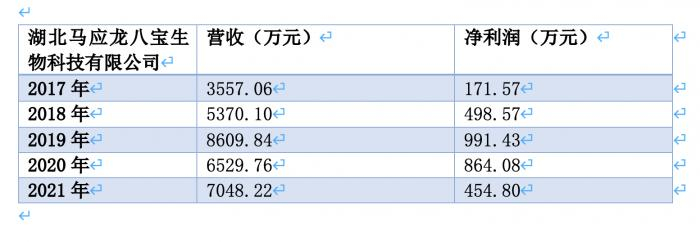 (湖北马应龙八宝生物科技有限公司2017年-2021年营收和净利润情况)