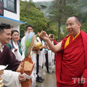 中国西藏网讯 穿新衣、戴新帽,手捧洁白的哈达,71岁的吉宗老阿妈和珞瓦新村信教群众在细雨中翘首以盼。