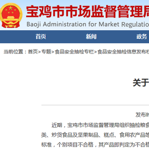 中国质量新闻网讯 近日,陕西省宝鸡市市场监督管理局发布关于4批次食品不合格情况的通告 2022年第19号。
