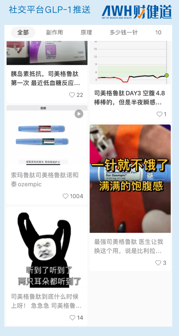检索小红书等社交平台,GLP-1类药物“减肥功效”凸显。
