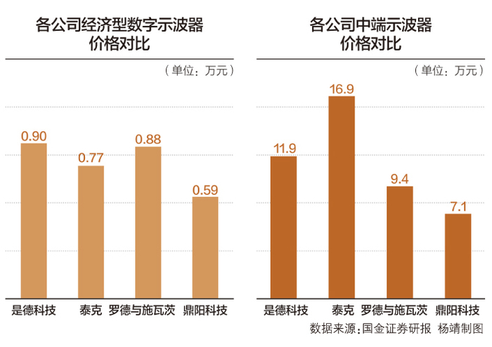 尽管是中国通用电子测试测量行业的代表企业,但鼎阳科技的全球市场份额仍不超过1%。具体来看,招股书显示,2019年,鼎阳科技的数字示波器在全球市场的占有率为0.87%、信号发生器的市场占有率为0.52%、频谱和网络分析仪的市场仅有率为0.14%,公司主要产品在全球市场上的占有率相对较低。
