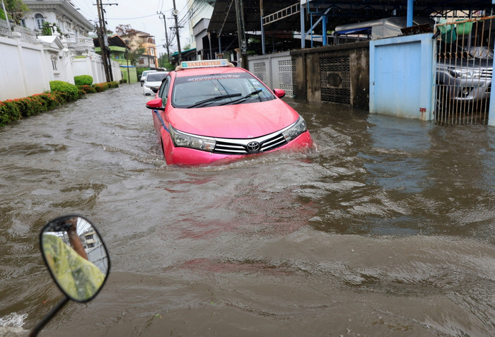 当地时间2022年7月21日,泰国曼谷,暴雨过后,曼谷街头积水泛滥成灾。