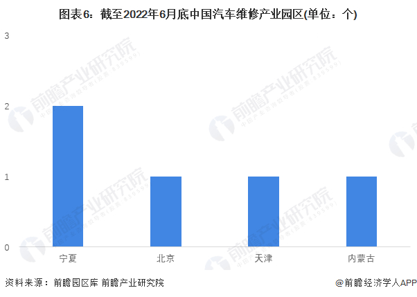 根据前瞻园区数据库的数据,目前我国共有5个汽车维修产业园,其中两个坐落在宁夏,其余三个分别分布于北京、天津和内蒙古自治区。