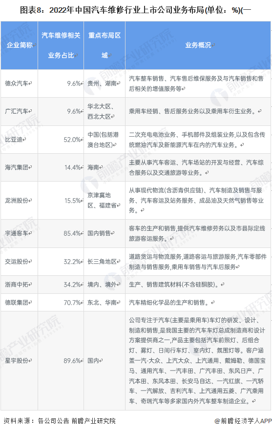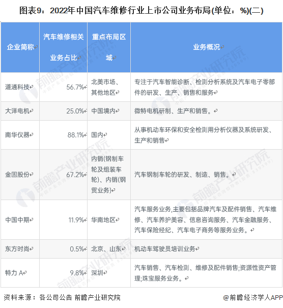 在国内涉及汽车维修业务的上市企业中,汽车维修多作为辅业或主营业务的一项存在,截至2022年6月,我国暂时不存在专注于汽车维修的上市企业。