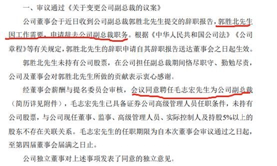 而就在2022年7月12日,原天风证券副总裁郭胜北已提出离职申请,公告显示“郭胜北先生因工作需要,申请辞去公司副总裁职务。”“经董事会薪酬与提名委员会审核,会议同意聘任毛志宏先生为公司副总裁”。公司副总裁、上海证券自营分公司总经理将由毛志宏接任。