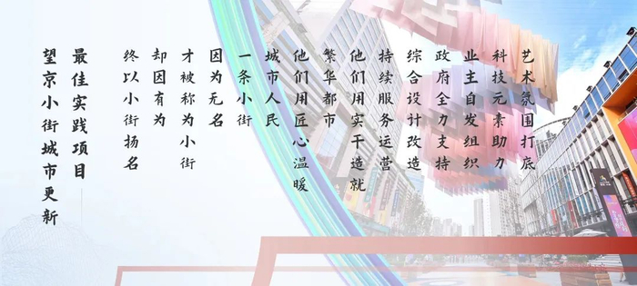2020年初,望京街道与万科共同开展望京小街改造提升,项目历时两年,从把脉问诊、问需问计,到理念创新、方式转变;从空间缝合、品质提升,到综合赋能、常态施治;从单一环境整治到政府、市场、社会的多元共治,把一个设施老旧、业态凌乱、功能错位的传统街区商圈,改造成了“国际化+文化+科技支撑”的时尚活力共享街区。