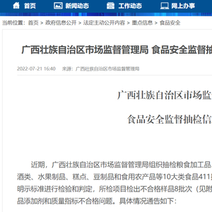 中国质量新闻网讯 2022年7月21日,广西壮族自治区市场监督管理局网站发布食品安全监督抽检信息通告(2022年第106期)。