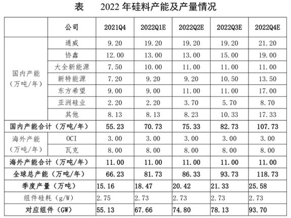 不过,从供应角度来看,通威股份、协鑫科技、大全新能源已经在2020 年、2021 年开工建设了一批新产能,这些新增硅料产能将2022年下半年至2023年陆续投放。