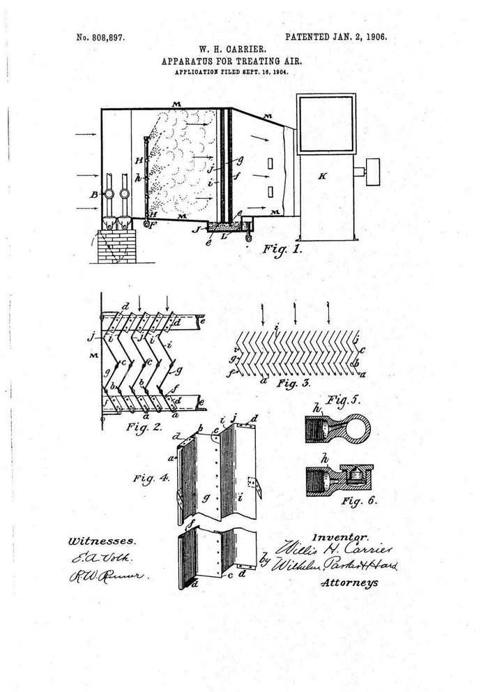 1901年,威利斯·开利(Willis Carrier)刚刚从康纳尔大学的机械工程学读完硕士毕业,作为应届毕业生的开利此时供职于一家印刷出版公司,由于这间公司偶尔会因纸张及墨水受了热度及湿度的影响,无法印出准确的颜色,为了解决这一问题,1902年,开利发明了首个现代化、电力推动的空气调节系统,现代空调由此诞生。