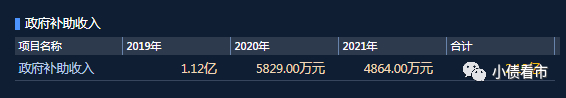 2019-2021年,云南水务分别获得政府补助1.12亿、5829万元以及4864万元,合计获得2.19亿补贴。