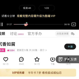 但最近有网友发现,自己在开通手机优酷会员后,用手机投屏到电视上观看内容受到限制,某些剧集在试看六分钟后,提示需开通电视端会员酷喵VIP才可以观看全集内容。