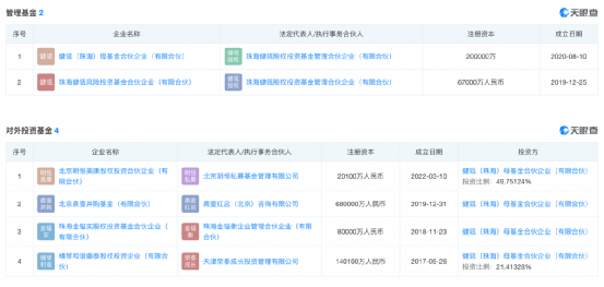目前,珠海健瓴旗下备案的私募基金有两只,包括健瓴(珠海)母基金合伙企业(有限合伙)、珠海健瓴风险投资基金合伙企业(有限合伙)。