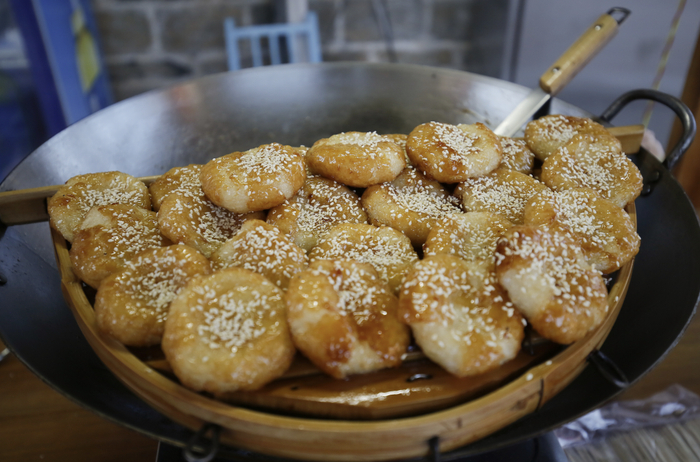 2018年7月14日傍晚,游览湖南醴陵瓷器口,路过几处湘味美食驻足,糖油粑粑,色泽浓郁,令人馋涎欲滴。(图|视觉中国)