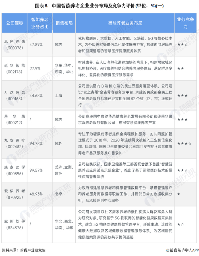 4、中国智能养老行业企业布局及竞争力评价