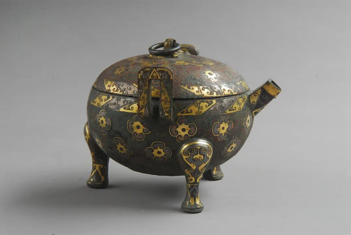 • 镶嵌金银团花纹带流鼎